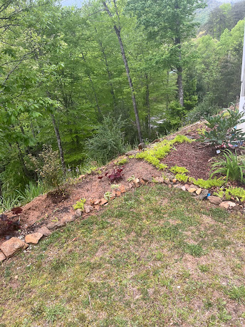 But ...... what to do with the blank spot left? This is the steepest drop area into the ravine. It made HeWho caution me everytime I walked behind the circus garden. I was being extra careful, since the idea of losing my balance and falling down this slope was not inviting. Furthermore, if my husband, HeWho has been known to laugh at me, were to video this calamity; I would be forced to relive it over and over again as he shared it with friends and family. Well, if I survived the fall, as I would be stopped abruptly by a large tree trunk, or even worse, big rocks and cold water.